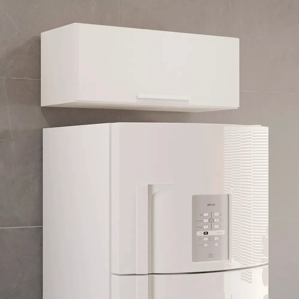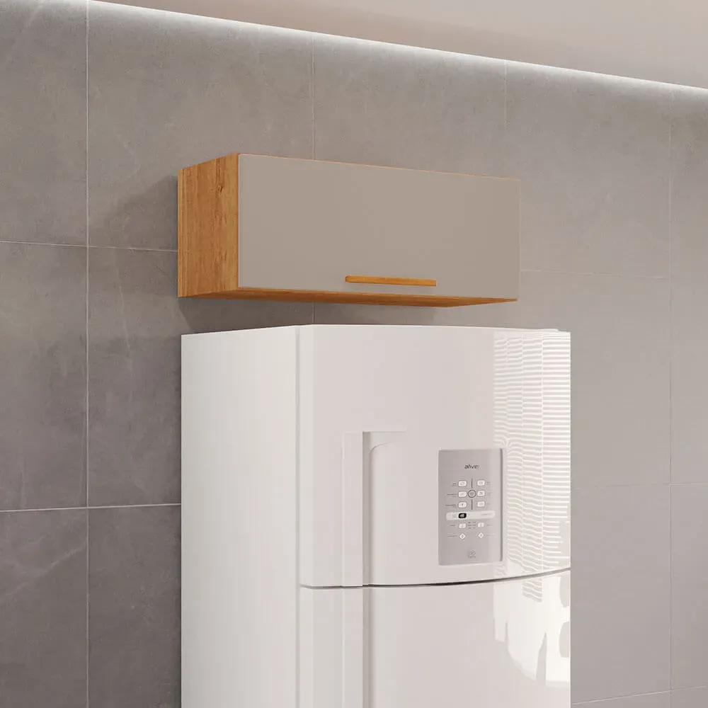 Aéreo Geladeira New Valencia - Fabricante: Salleto - Cores em Branco, Cinamomo/Grafite e Cinamomo/Off White - MDP - Puxador de madeira Dimensões: - Altura: 30 cm - Largura: 71 cm - Profundidade :26 cm