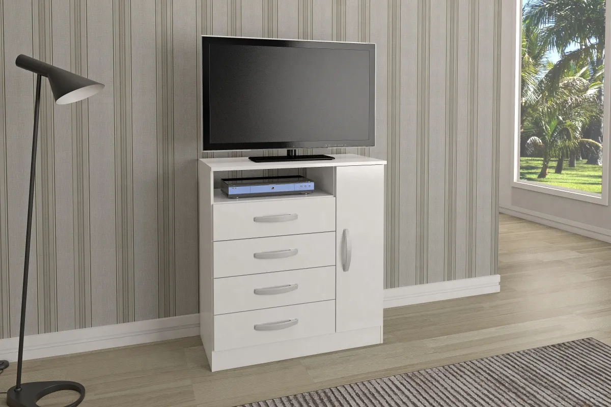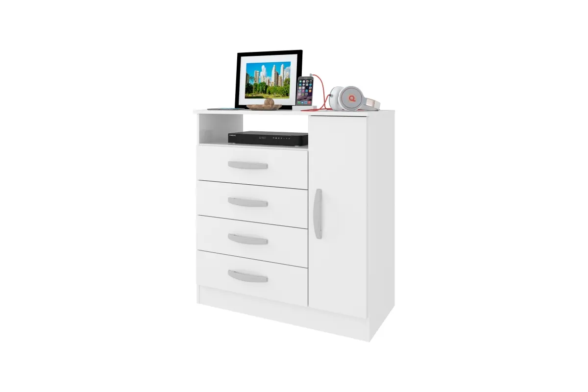 Cômoda Delta 1 Porta 4 Gavetas - Fabricante: Atualle Móveis - Cores em Branco ou Canelato 3D/Natura Off White - MDP - Corrediça Metálica Dimensões Altura: 86 cm Largura: 80 cm Profundidade: 39 cm Peso: 27,4 kg