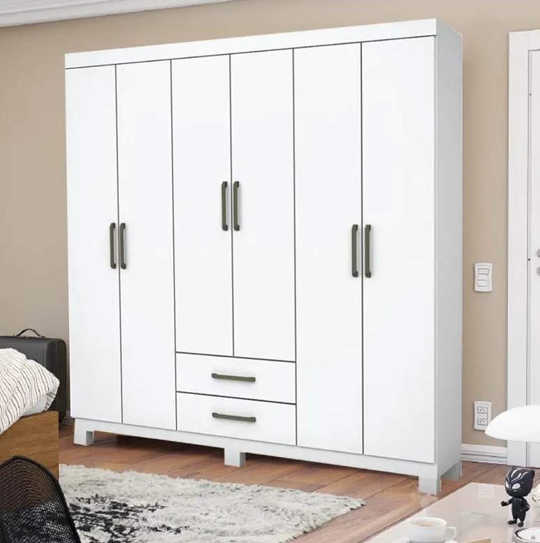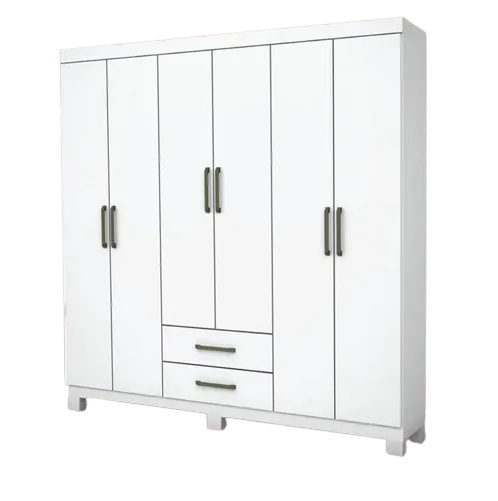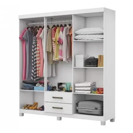 Guarda-Roupa Aries Gold - Fabricante: Carioca Móveis - Cores em Branco e Freijó - 2 Gavetas com corrediças metálicas - Pés - Cabideiro em Alumínio - Dobradiças de Pressão - Dimensões: - Altura: 187 cm (Com pés) - Largura: 153 cm - Profundidade: 40 cm