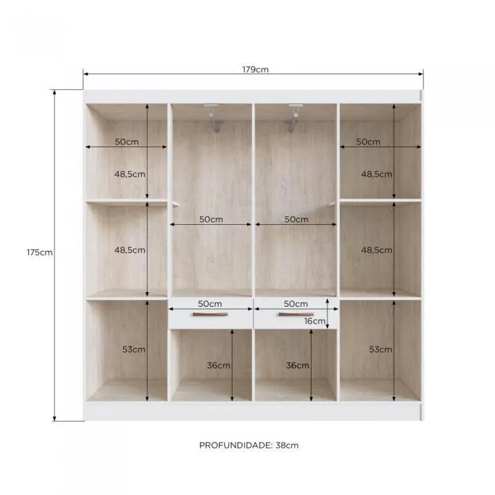 Dimensões Altura: 175 cm Largura: 179 cm Profundidade: 38 cm