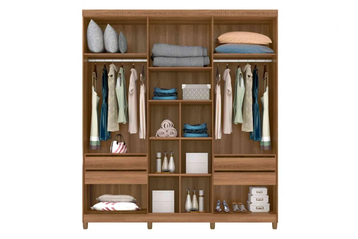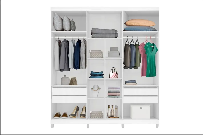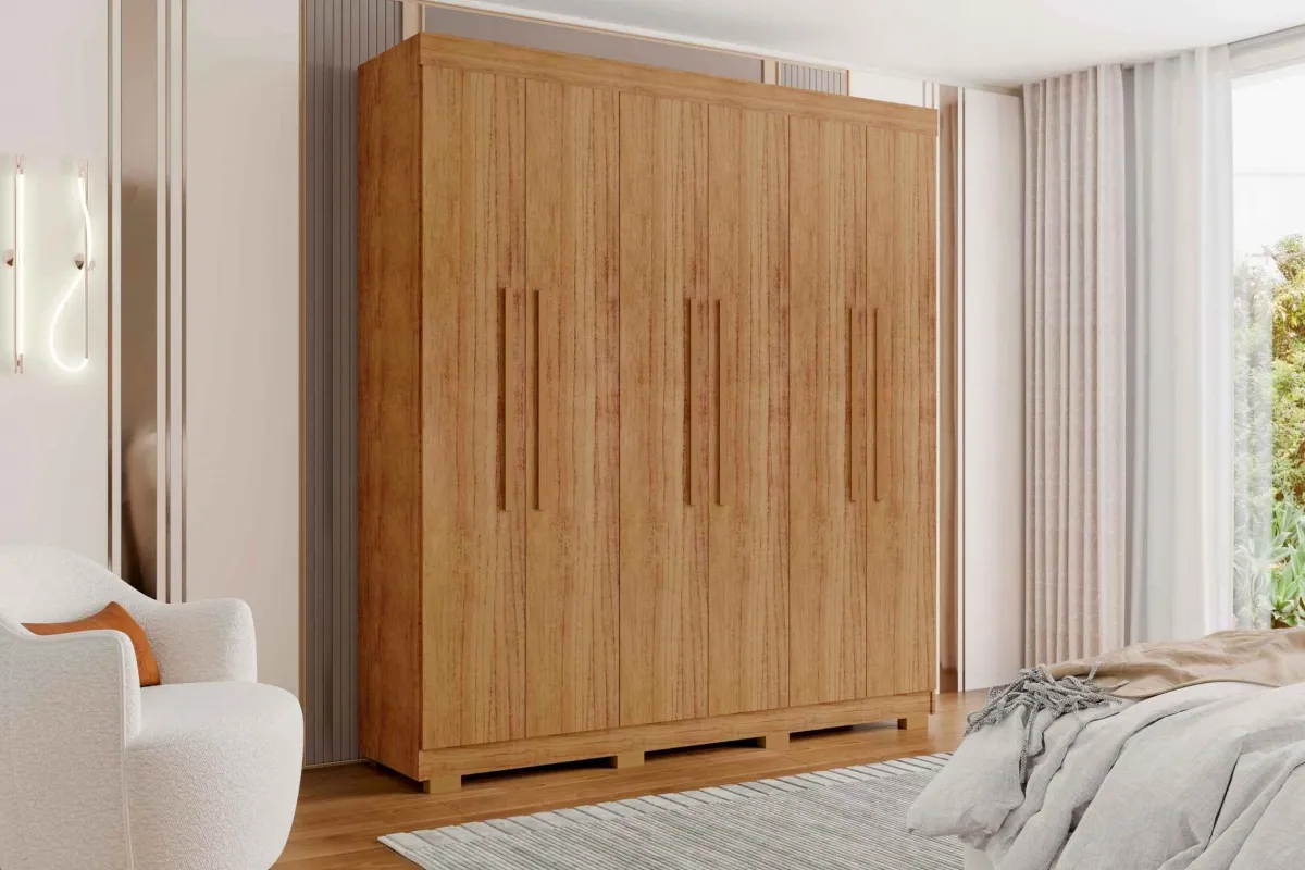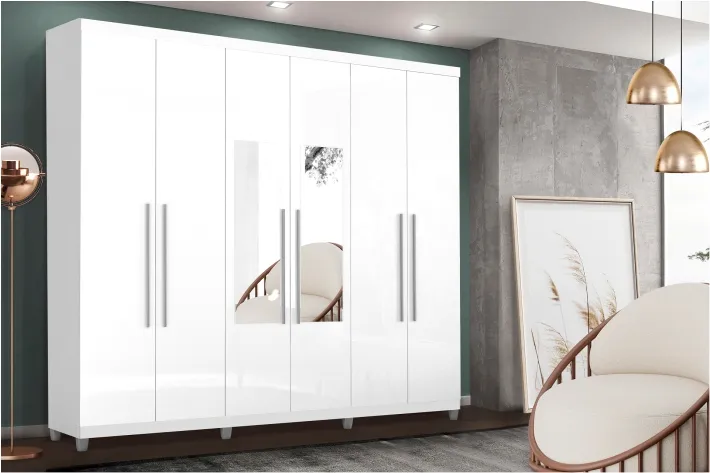 Transforme o visual da sua casa com o novo guarda-roupas de MDF e MDP. Com 06 portas e 04 gavetas internas equipadas com corrediças telescópicas, este móvel é perfeito para manter a organização do seu espaço. Os cabideiros em alumínio garantem resistência e durabilidade, proporcionando mais praticidade no seu dia a dia.