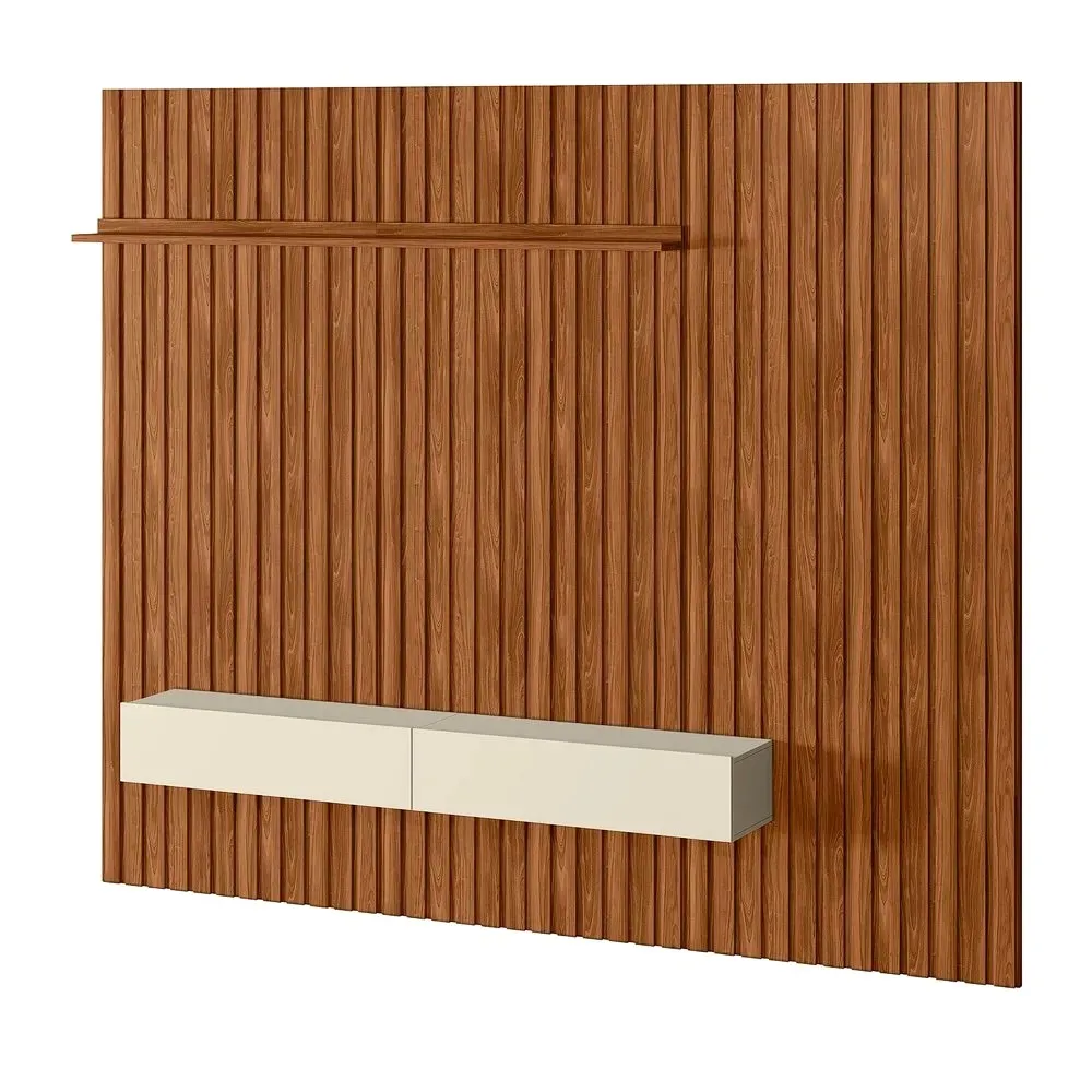 Painel Ripado Project 2.20 com Kit Gaveta + Módulo 1m - Fabricante: Mobler Móveis - Cores em Cinamomo/Mel/Off White - Estrutura MDP - Espaço para TV de até 75" - Corrediça Telescópica - Módulos podem ser vendidos separadamente Dimensões Altura: 220 cm Largura: 300 cm Profundidade: 37,6 cm