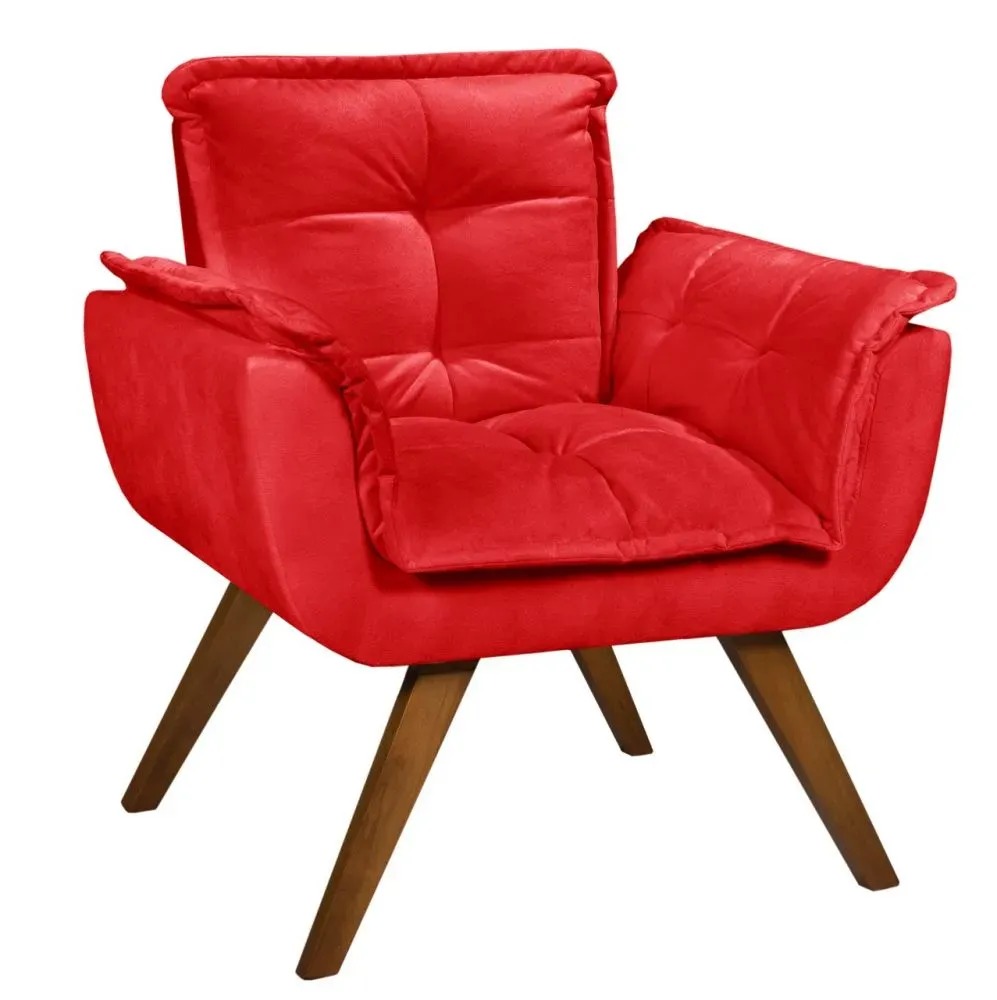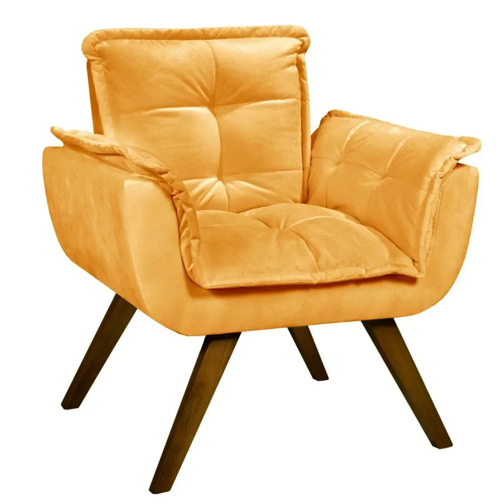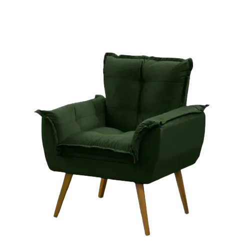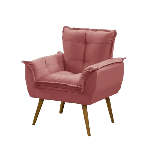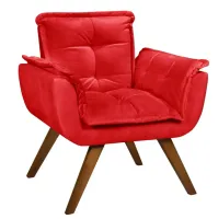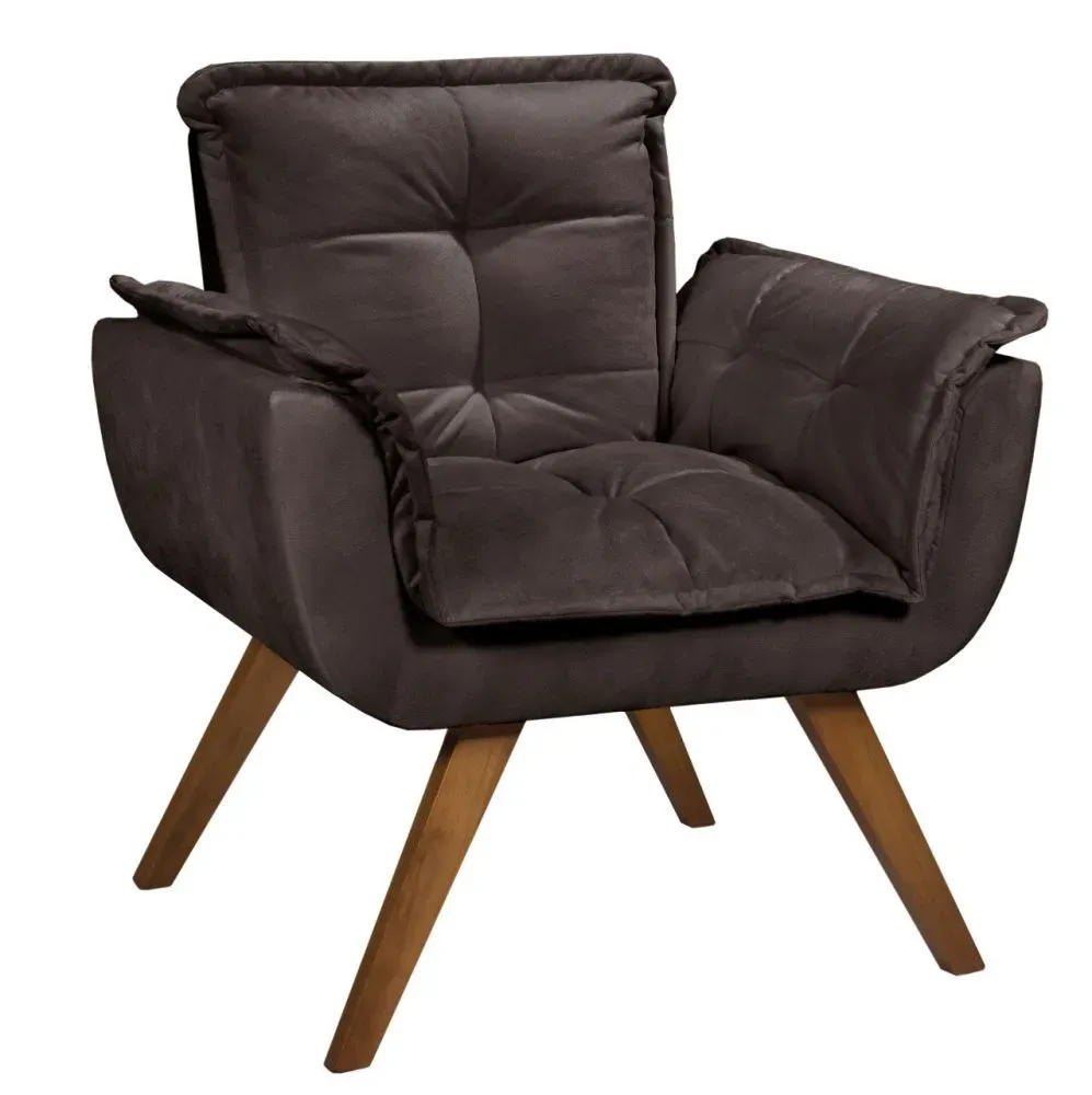Poltrona Opalla - Fabricante: Razone Estofados - Cores: Bege, Bordô, Chumbo, Marrom, Preto, Rosê ou Verde - Pillow Top 5 cm no assento - Espuma D26 soft - Espuma no encosto - Estrutura e pés retrô de madeira maciça Medidas Altura: 80 cm Largura: 89 cm Profundidade: 45 cm