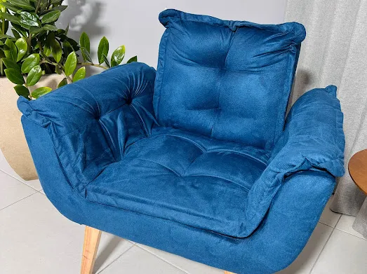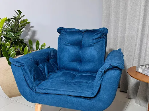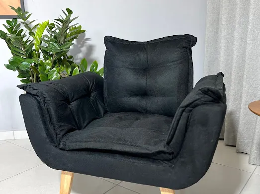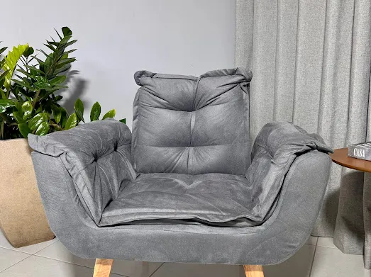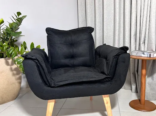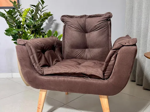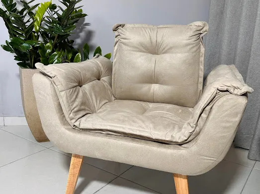 Poltrona Opalla - Fabricante: Razone Estofados - Cores: Bege, Bordô, Chumbo, Marrom, Preto, Rosê ou Verde - Pillow Top 5 cm no assento - Espuma D26 soft - Espuma no encosto - Estrutura e pés retrô de madeira maciça Medidas Altura: 80 cm Largura: 89 cm Profundidade: 45 cm