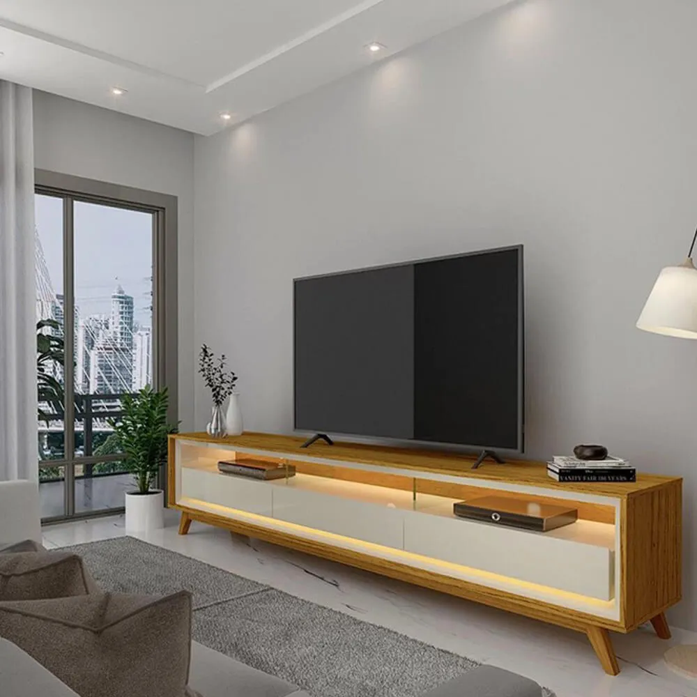 O Rack Requinte 212cm para TV até 75 Polegadas com LED 3 Gavetas Gelius é ideal para a sua sala de TV, contempla um desing inovador que promove ao seu ambiente modernidade e elegância, suas gavetas em posição estratégica inserem leveza a peça. Conta ainda com uma separação de vidro, promovendo nichos para o apoio de eletrônicos. Além de LED, queridinho da decoração.