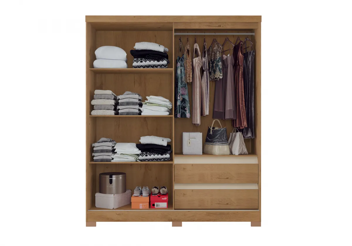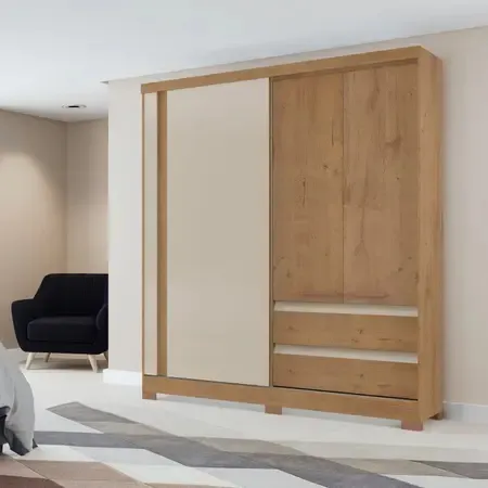 Roupeiro Condor 3 Portas - Fabricante: Atualle Móveis - Cores em Canelato/Natura Off White 3D - MDP - Porta Flex Lisa ou pintura ripada 3D - 1 Porta de Correr - Espaço para calçados - Espaço para roupas longas Dimensões Altura: 213 cm Largura: 178 cm Profundidade: 49 cm Peso: 98,5 kg