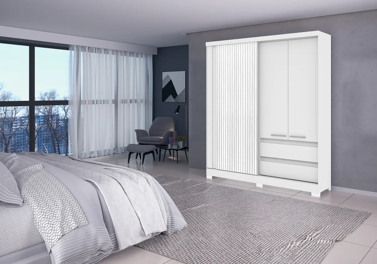 Roupeiro Condor 3 Portas - Fabricante: Atualle Móveis - Cores em Canelato/Natura Off White 3D - MDP - Porta Flex Lisa ou pintura ripada 3D - 1 Porta de Correr - Espaço para calçados - Espaço para roupas longas