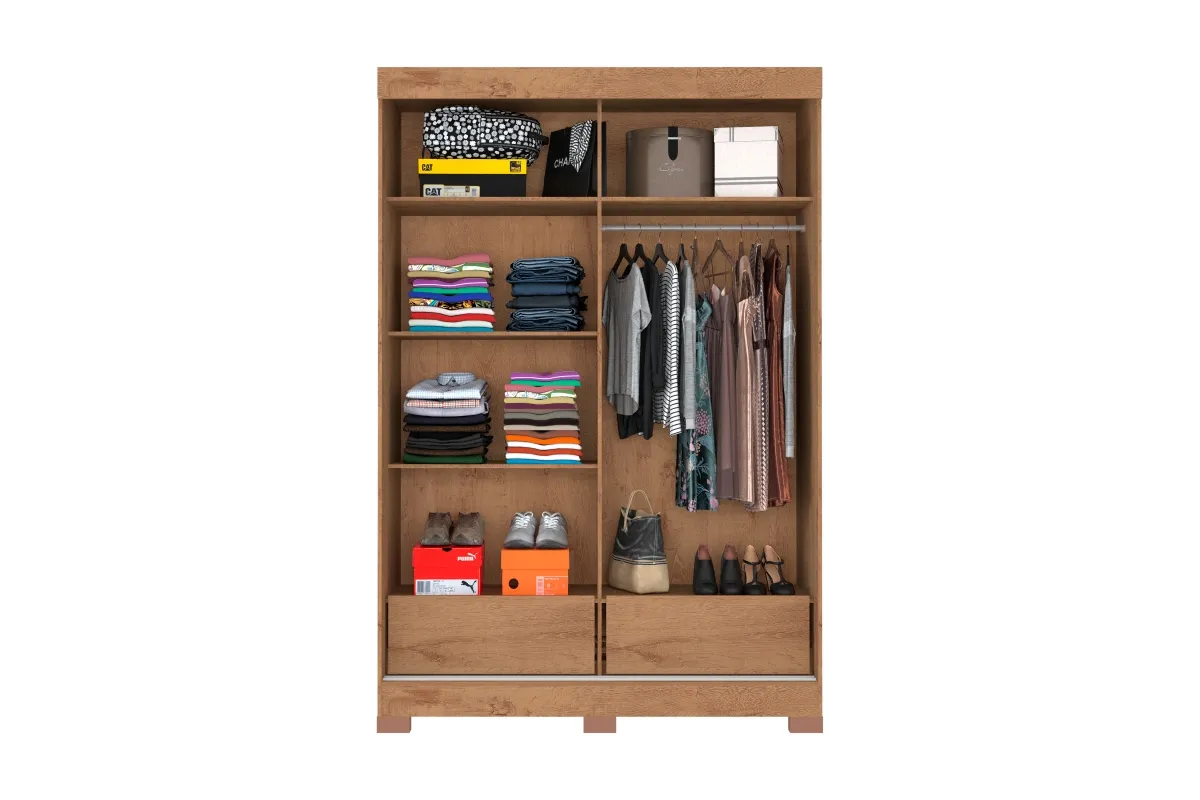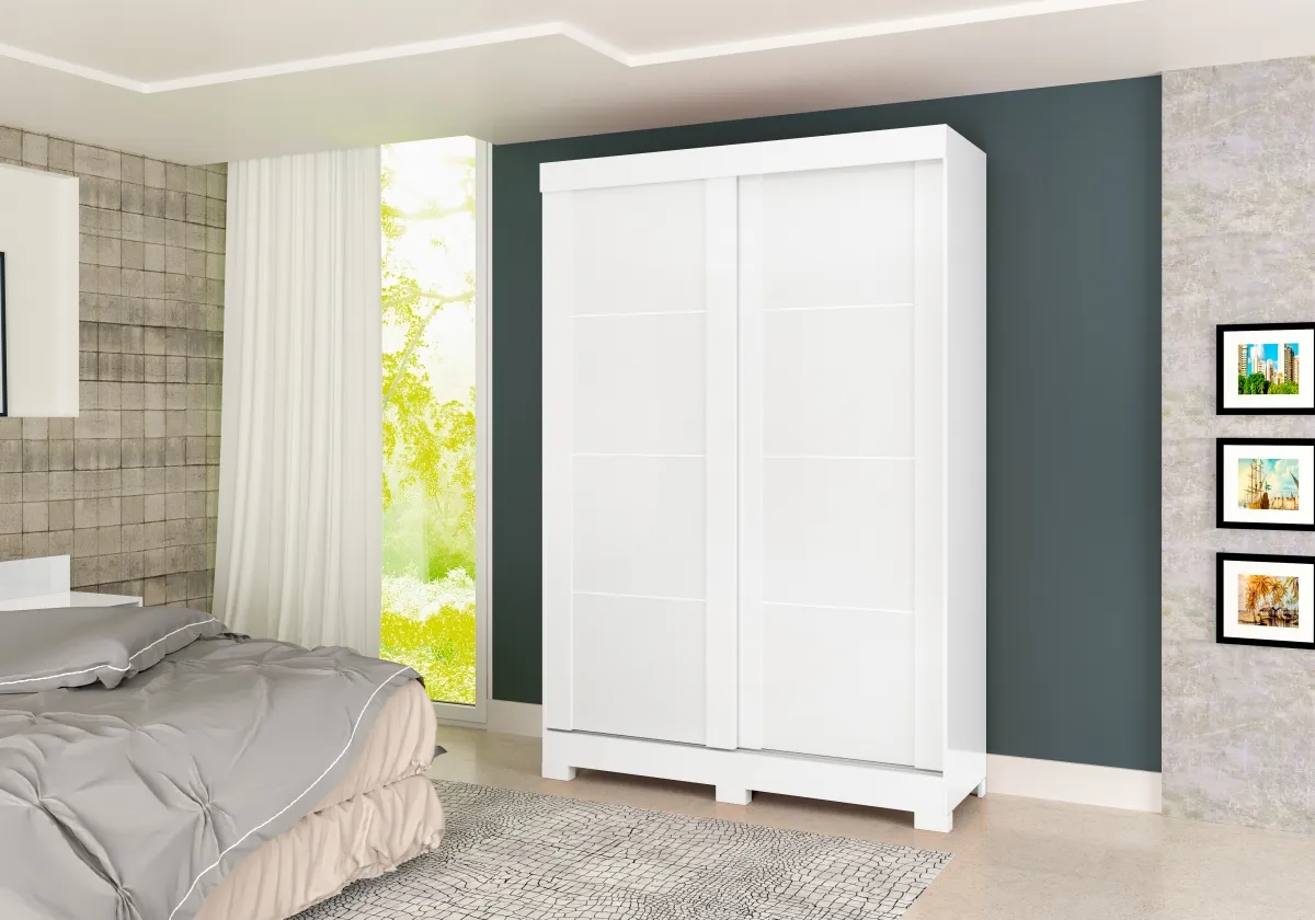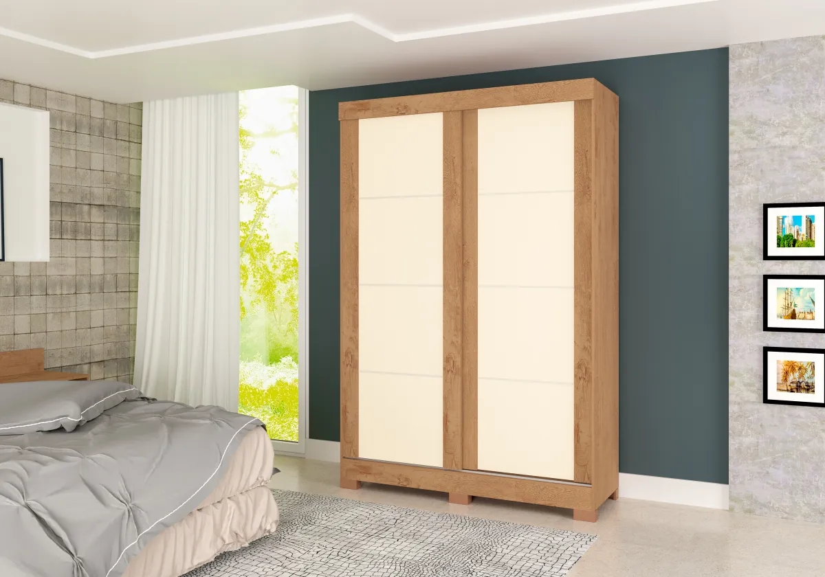 Roupeiro Turim 2 Portas - Fabricante: Atualle Móveis - Cores em Branco ou Canelato 3D/Natura Off White(Flex) - MDP/MDF - 2 Gavetas - Espaço para calçados - Espaço para roupas longas - Corrediças metálicas - Pés em PVC Dimensões Altura: 204 cm Largura: 136 cm Profundidade: 50 cm Peso: 75,3 kg