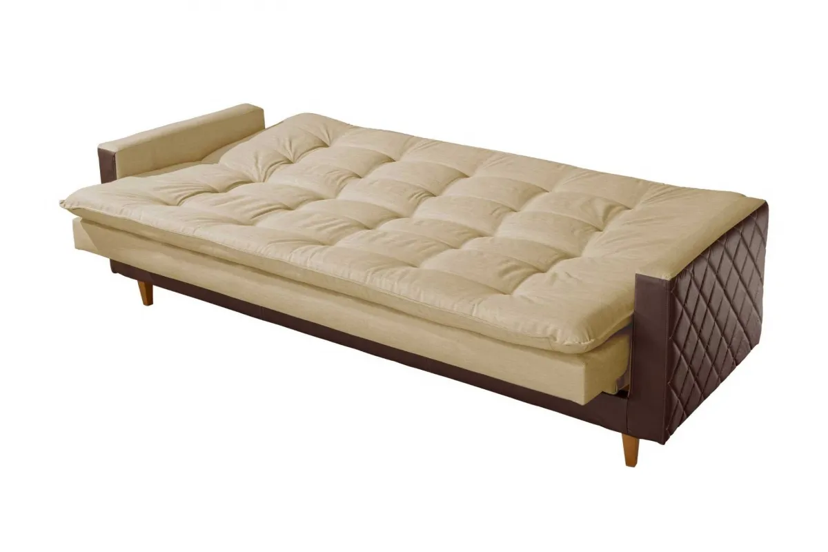 Sofá Cama Viena 2.10m – Bege/Marrom Veludinho