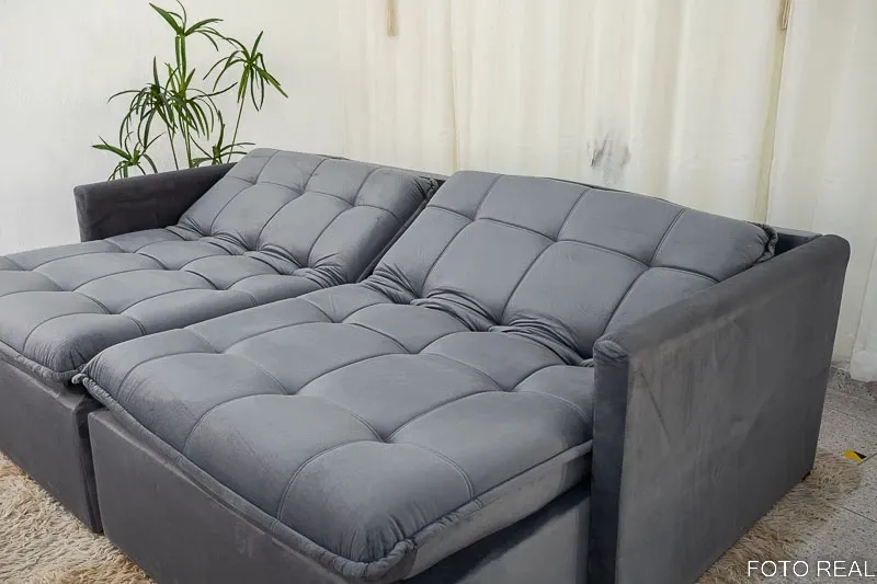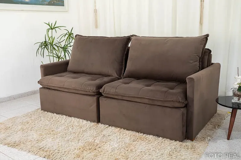 Medidas: Largura 2.15m Assento fechado: 1.05m Assento aberto: 1.45m Altura: 1.02m Largura braço: 0.09m Altura do chão ao assento: 0.49m Altura do pillow: 15cm