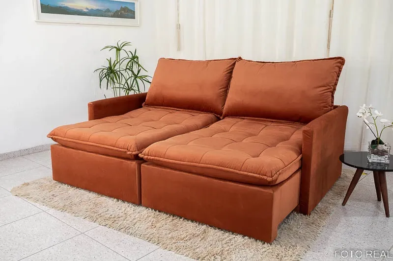 Sofá Retrátil Reclinável Málaga 2.15m Veludo Terracota A62 - Sem Caixa
